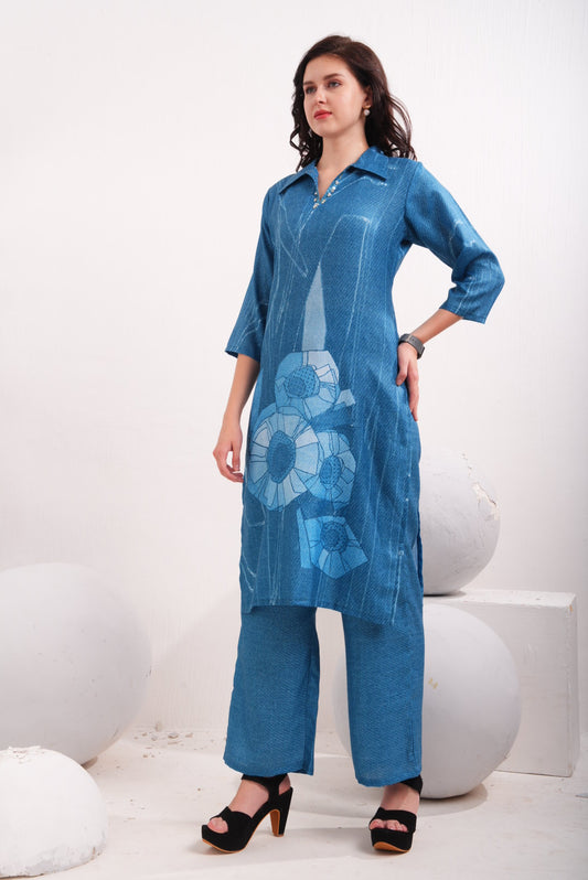Fuel Yellow-Colored Kurtique Co Ord Set