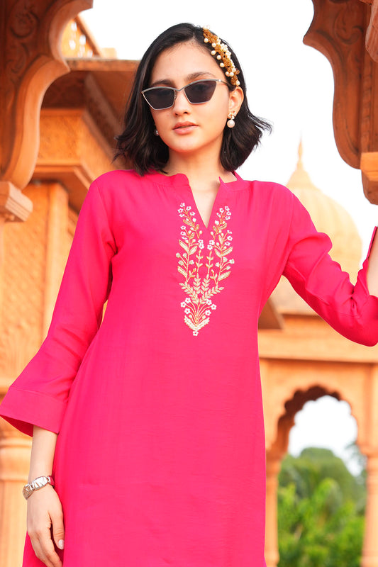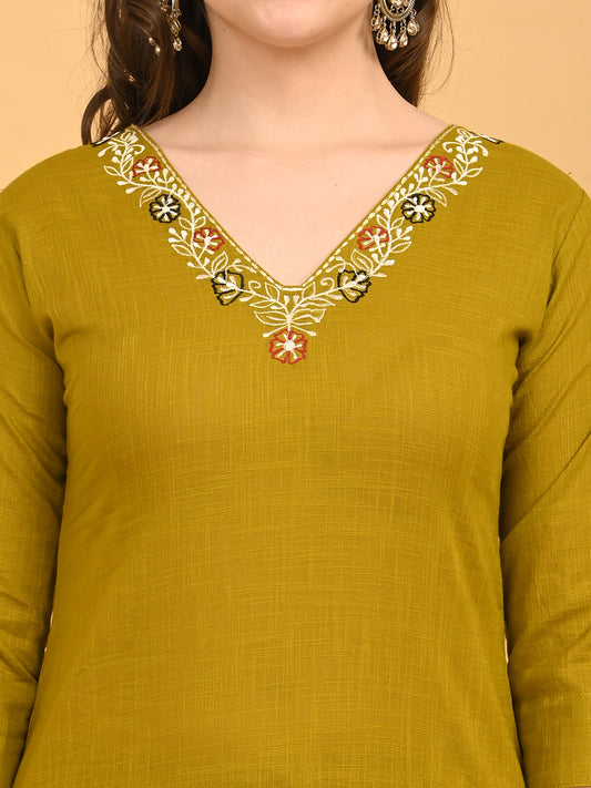Fuel Yellow-Colored Kurtique Co-Ord Set