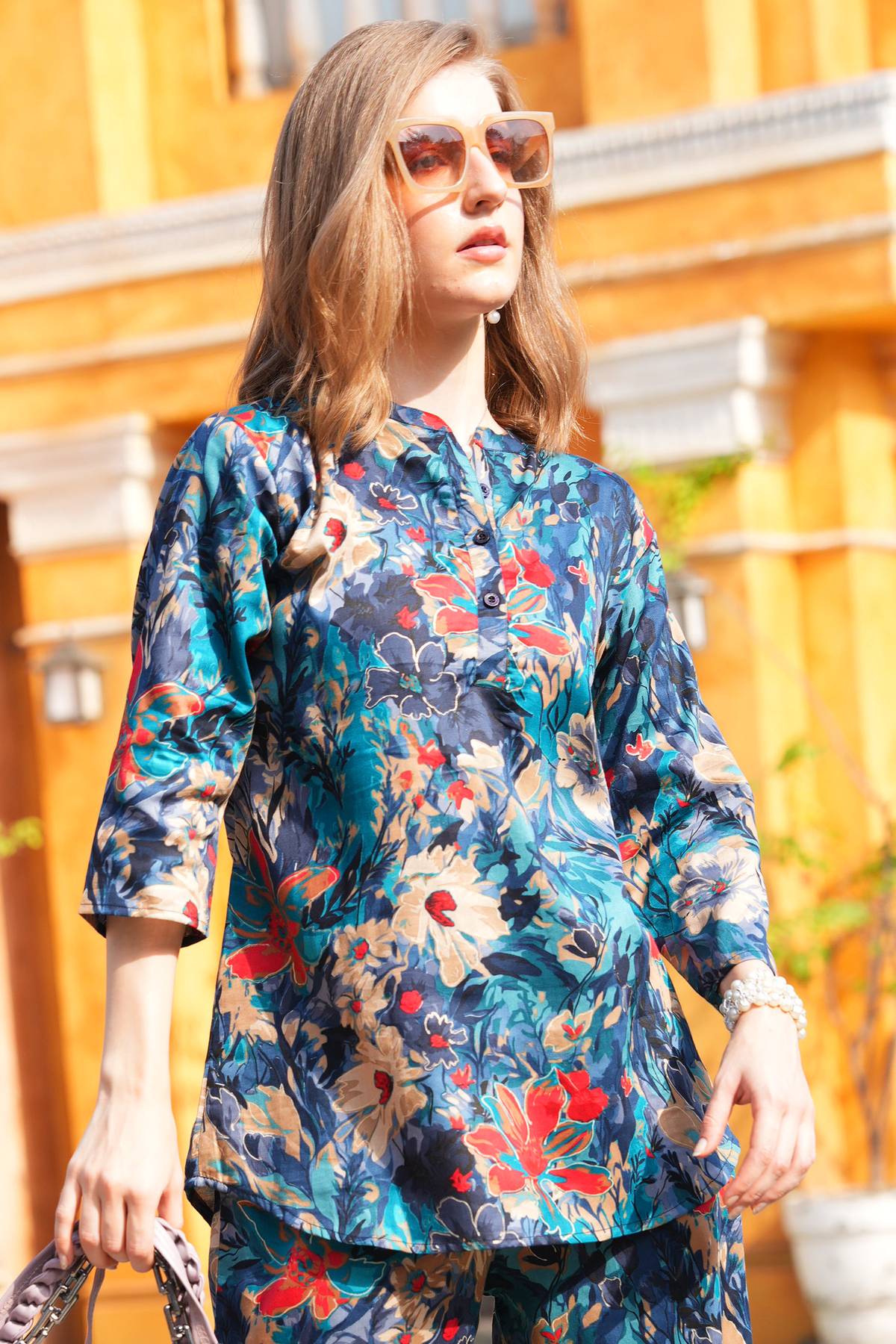 You can simply unfurl yourself into the embrace of this Co-Ord Set to unwind after a long day at work. This one is crafted from the viscose silk fabric to leave you feeling light and airy, whether you wear it to bed or lounge around in it at home.